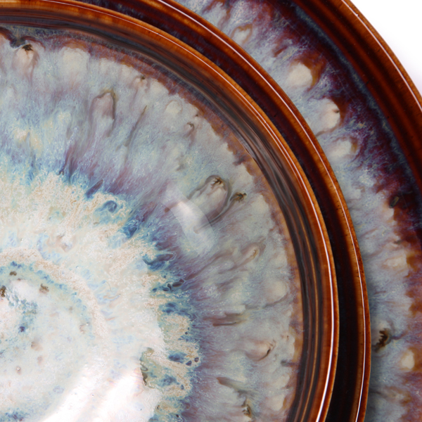 2. Place the piece on a banding wheel and while it is spinning apply 2 coats of SW-167 Sand and Sea. We left a build-up of glaze in a swirl so that will show in the firing.