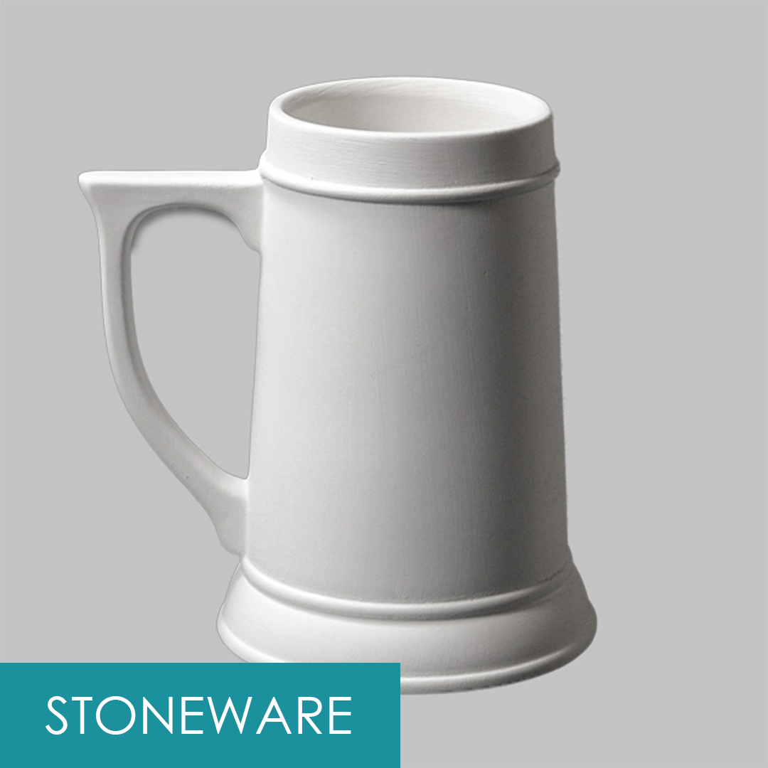 Stoneware bisque stein measures 18cm. This item is measured at 24oz before firing